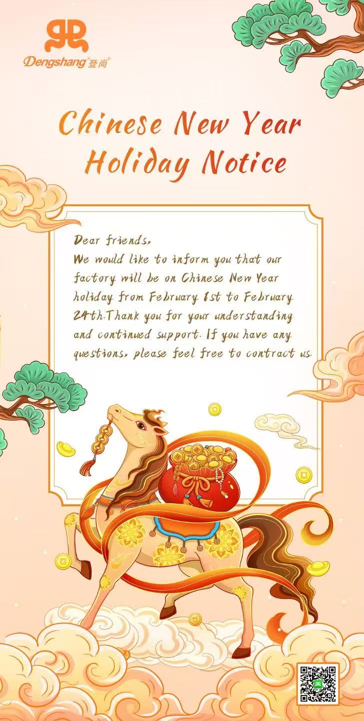 尊敬的客户及合作伙伴:您好!根据国家法定节假日规定,结合公司实际运营安排,现将台州登尚机电有限公司2026年春节放假相关事宜通知如下:
